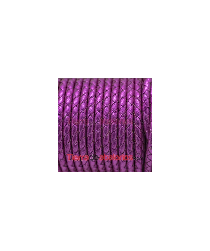 • Cuero Trenzado Sintético 5mm, Hueco 1,3mm, Fucsia Metalizado