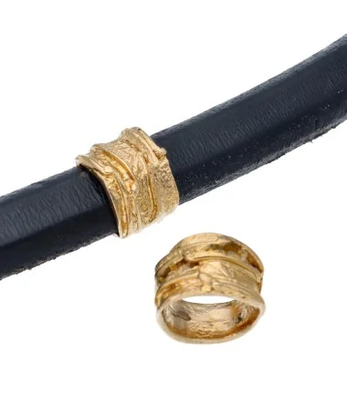 Entrepieza de Zamak con baño de Oro de Alta Calidad Acabado dorado semi-mate Ideal para cordones de 9 ó 10mm y Cuero Regaliz Fabricación en la Unión Europea.